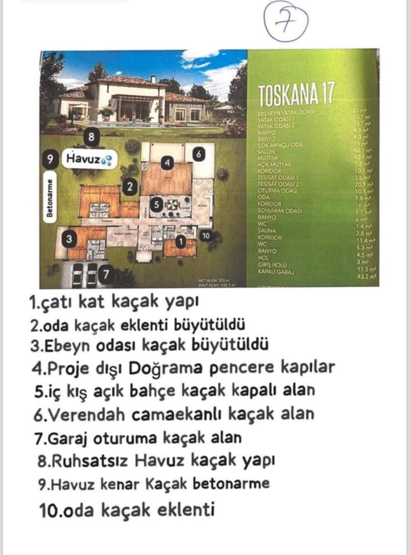 “350 metrekare kullanım alanı kaçak yapılar ile 580 metrekareye çıkartmış”