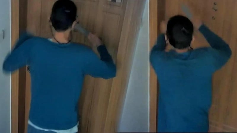 Biricik dakikalarca elinde satırla kapıda beklerken Nermin Gümrükçü ise eşini arayarak durumu anlattı. Eşinin telefonu üzerine eve gelen Murat Gümrükçü, kapıda ve kapının önündeki bulaşık makinesinde çizikler olduğunu gördü.