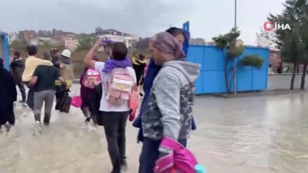 Araçlar yollarda kalırken, okulda mahsur kalan öğrencileri itfaiye ekipleri ve vatandaşlar tahliye etti.