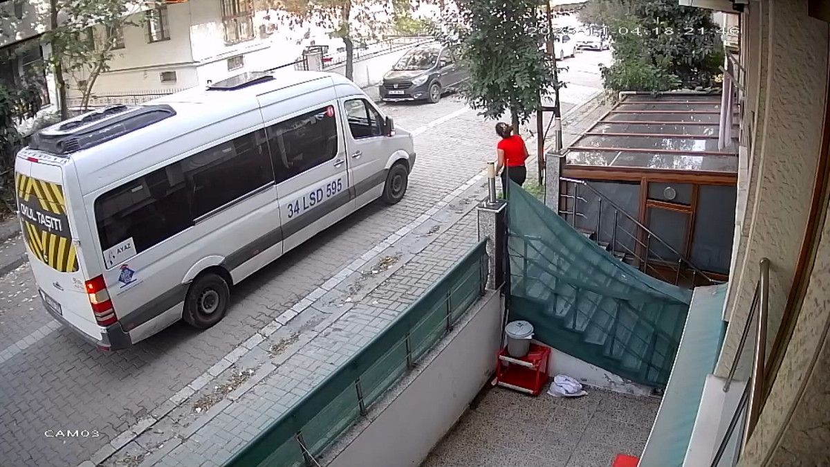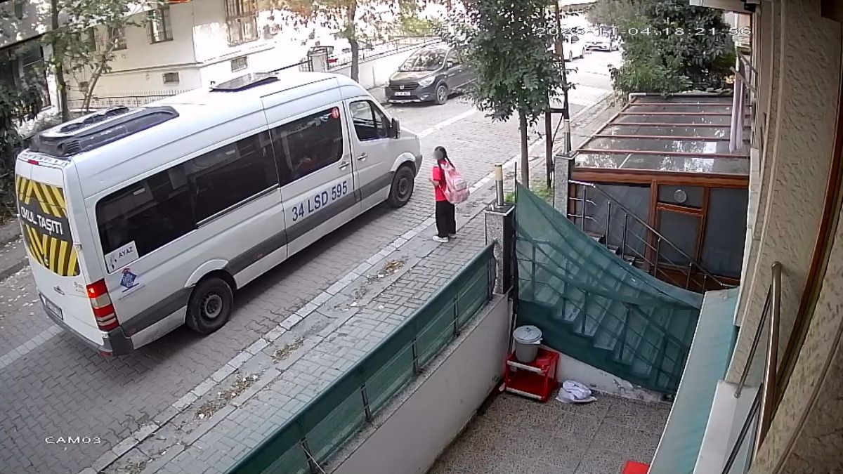 - Şüpheli, öğrenci servisi ve annenin geldiğini görünce kaçtı; yaşananlar güvenlik kamerasına yansıdı.