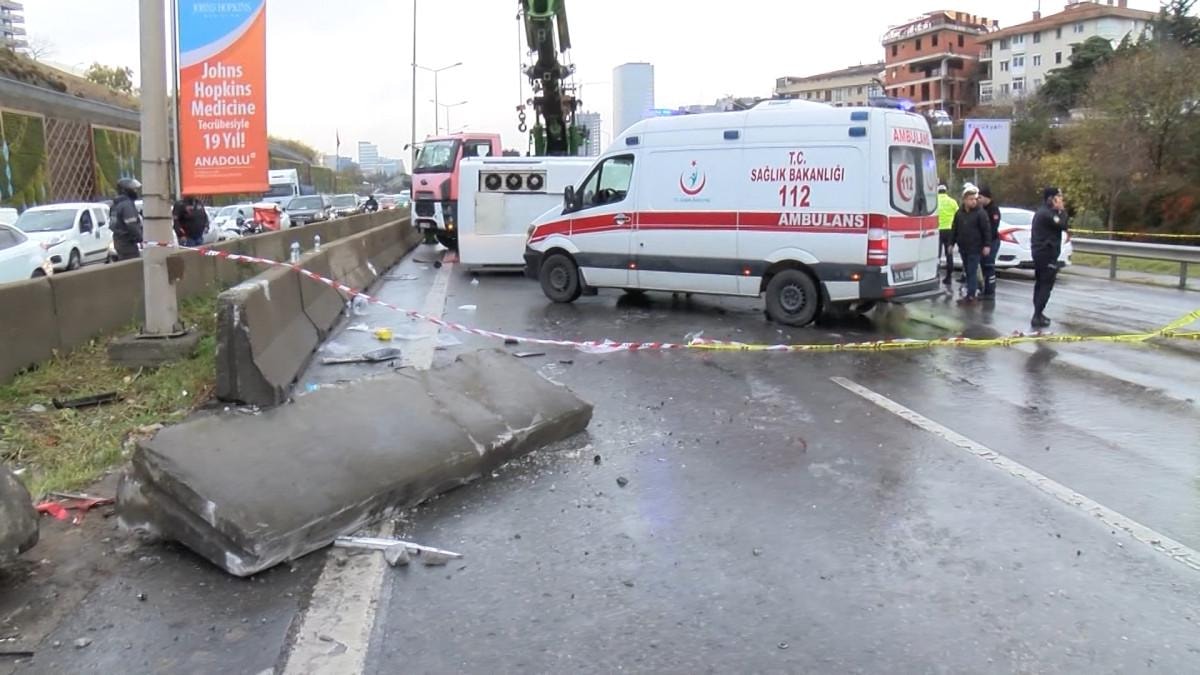 Kontrolden çıkan otomobil, orta refüjdeki beton bariyerlere çarparak devrildi.