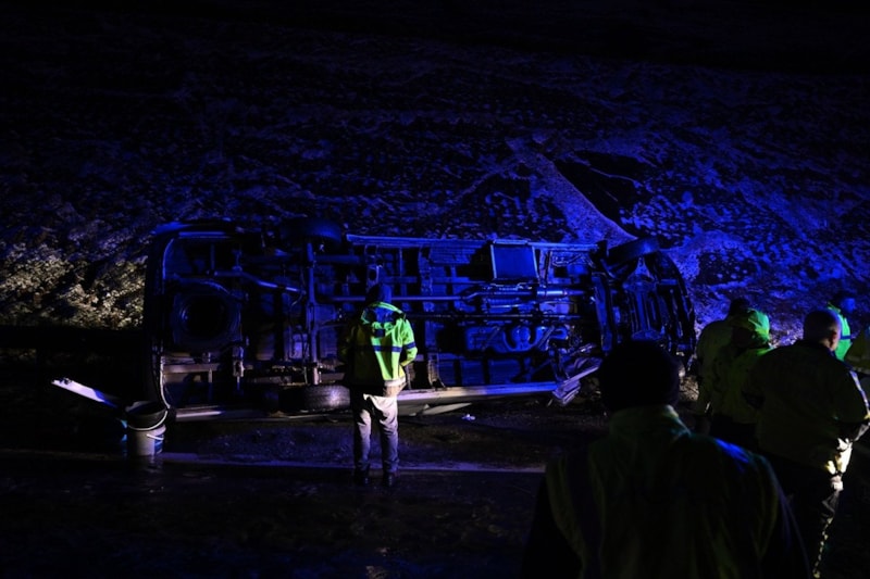 İstanbul'da Kuzey Çevre Otoyolu Boğazköy İstiklal mevkiinde İstanbul Havalimanı istikametine seyir halindeki F.S. idaresindeki servis minibüsü kar yağışı sonrası kayganlaşan yolda kontrolden çıkıp bariyerlere çarparak devrildi.