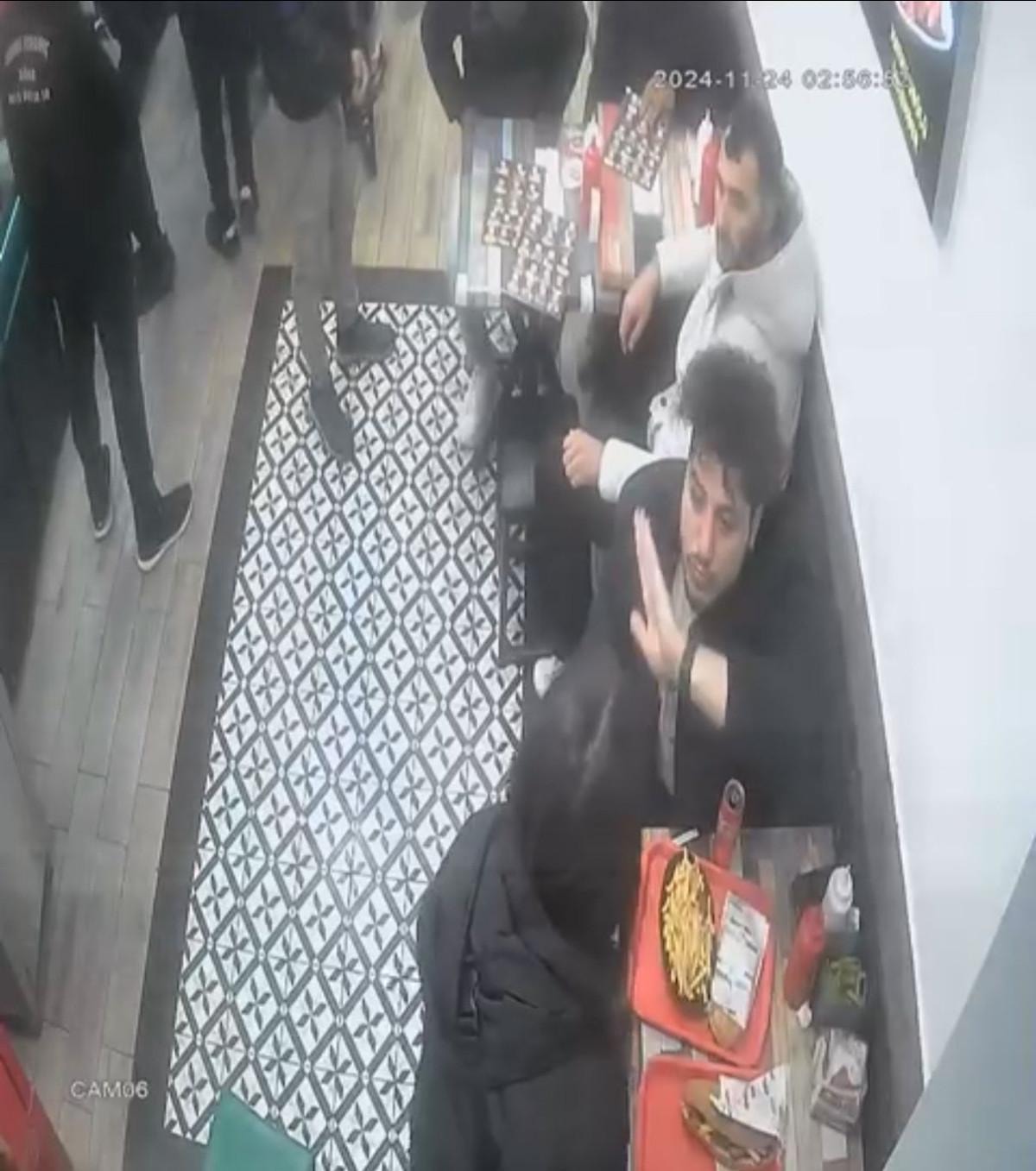 O sırada da siparişler geldi ancak Elif K., Burak K. ile yeniden tartışmaya başladı. Bu duruma sinirlenen Burak K., Elif K.’ye tokat attı, ardından da kola ve patates kızartması fırlattı.