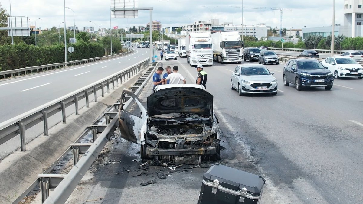 - İstanbul Anadolu Otoyolu'nda seyir halindeki bir otomobilde yangın çıktı.