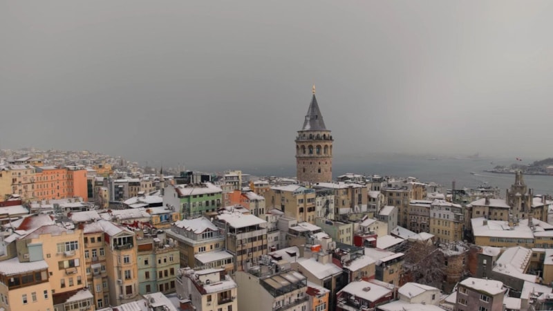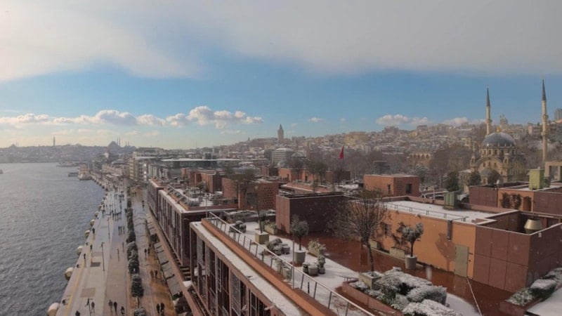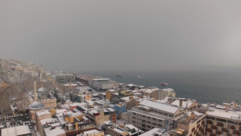 Tarihi yarımada beyaza büründü. Seyirlik manzara havadan görüntülendi.