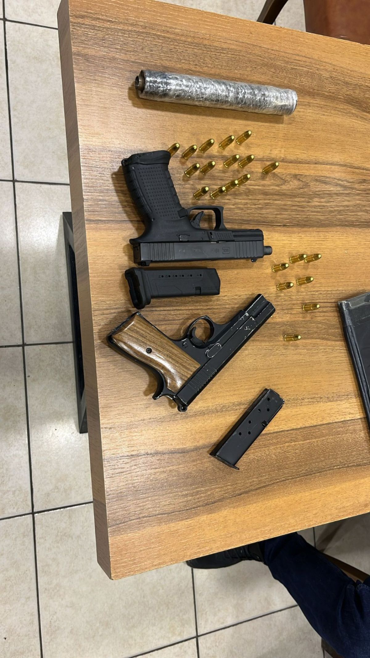 Şüphelilerin evlerinde yapılan aramalarda 2 adet ruhsatsız 9 mm tabanca, 1 adet susturucu, 21 adet mermi ile olay sırasında başlarında bulunan 2 motosiklet kaskı ele geçirildi.