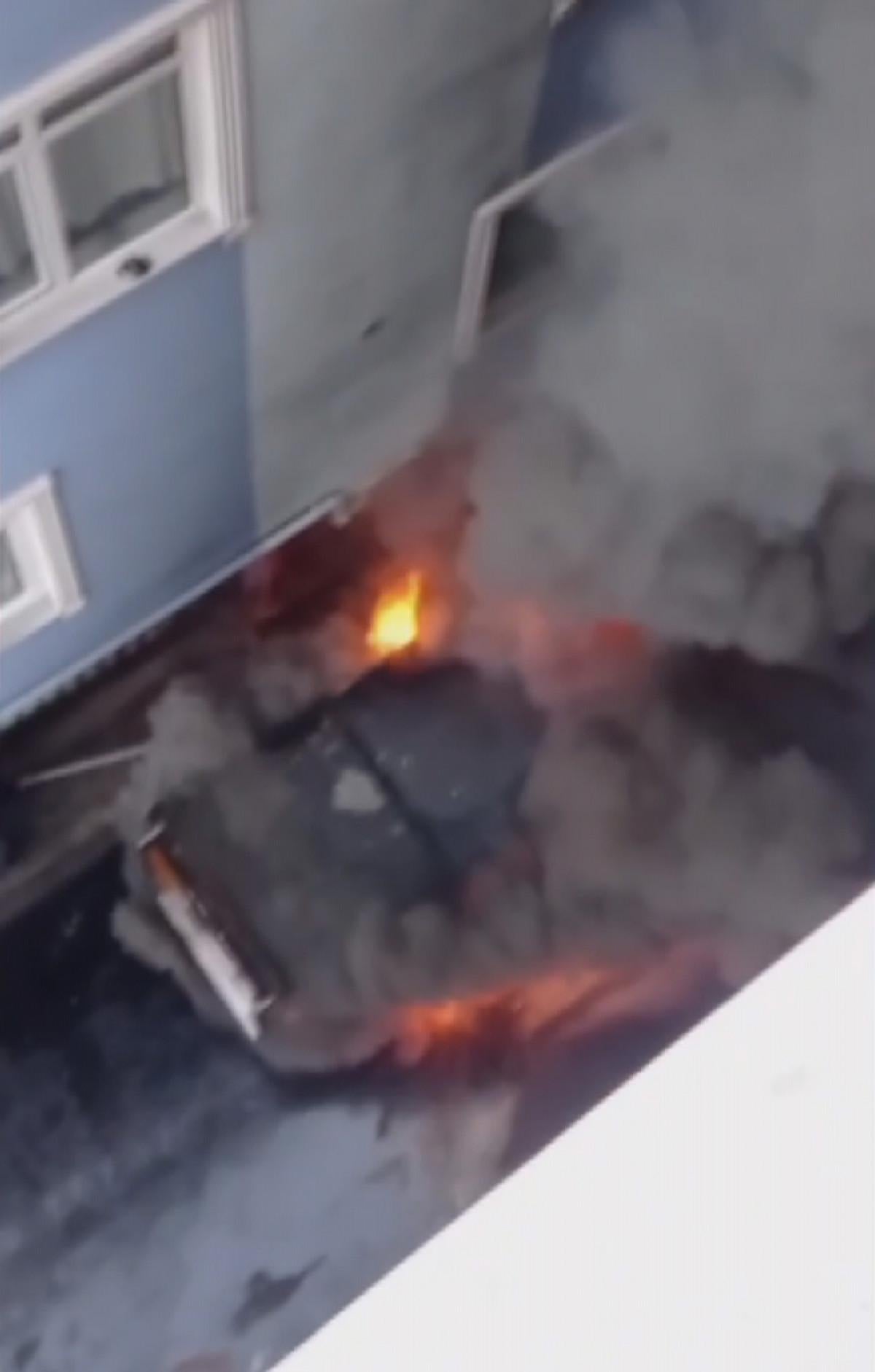 Çalışmalar sonrası aracın kullanılamaz hale geldiği görüldü. Sokaktaki bir binanın da duvarı yangın nedeniyle oluşan dumandan karardı.