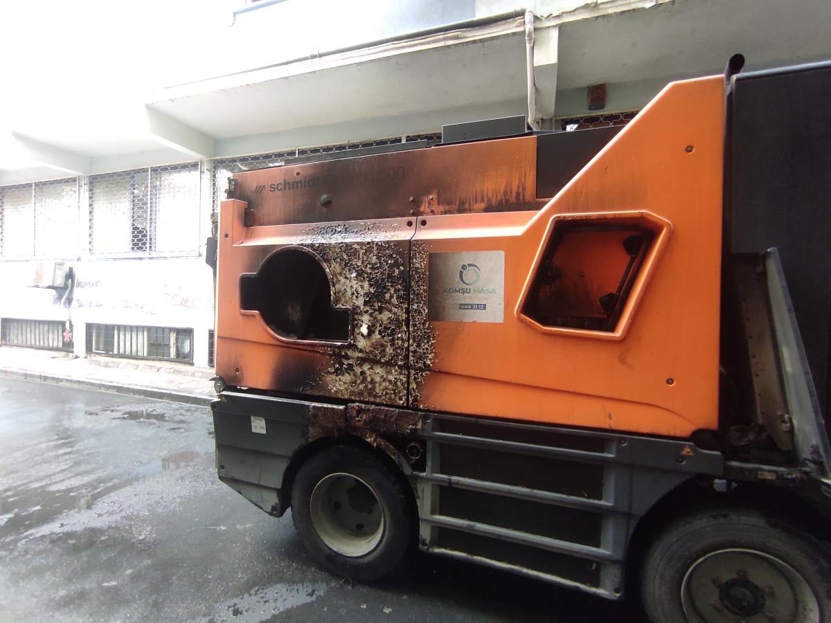 Süpürme aracı alevlere teslim oldu