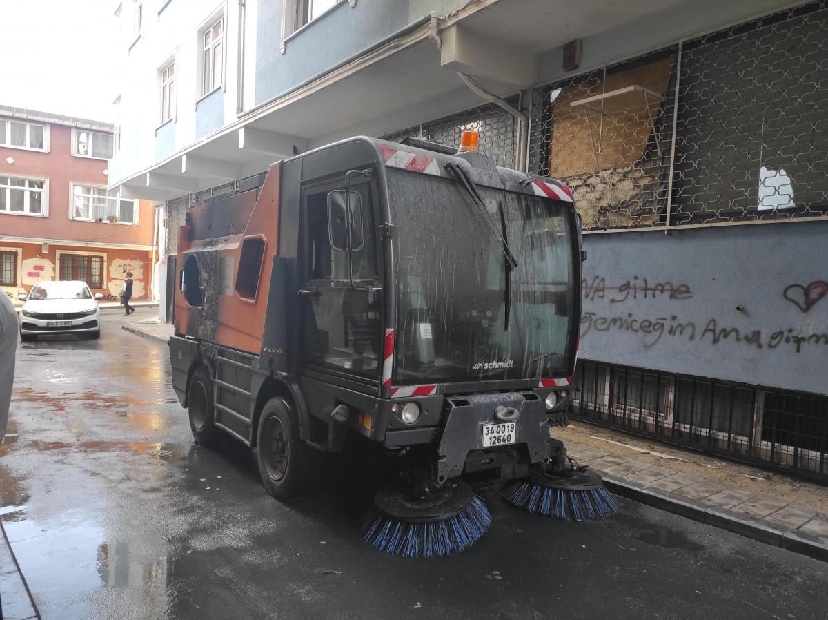 Okmeydanı'nda saat 07.30 sıralarında, Şişli Belediyesi'ne ait sokak süpürme aracı seyir halindeyken alev aldı.
