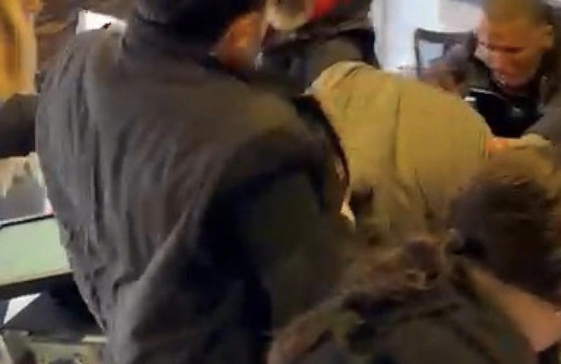Eski ve yeni yöneticiler, site güvenlik görevlilerinin ayırma çabalarına rağmen kavga etmeye başladı.
