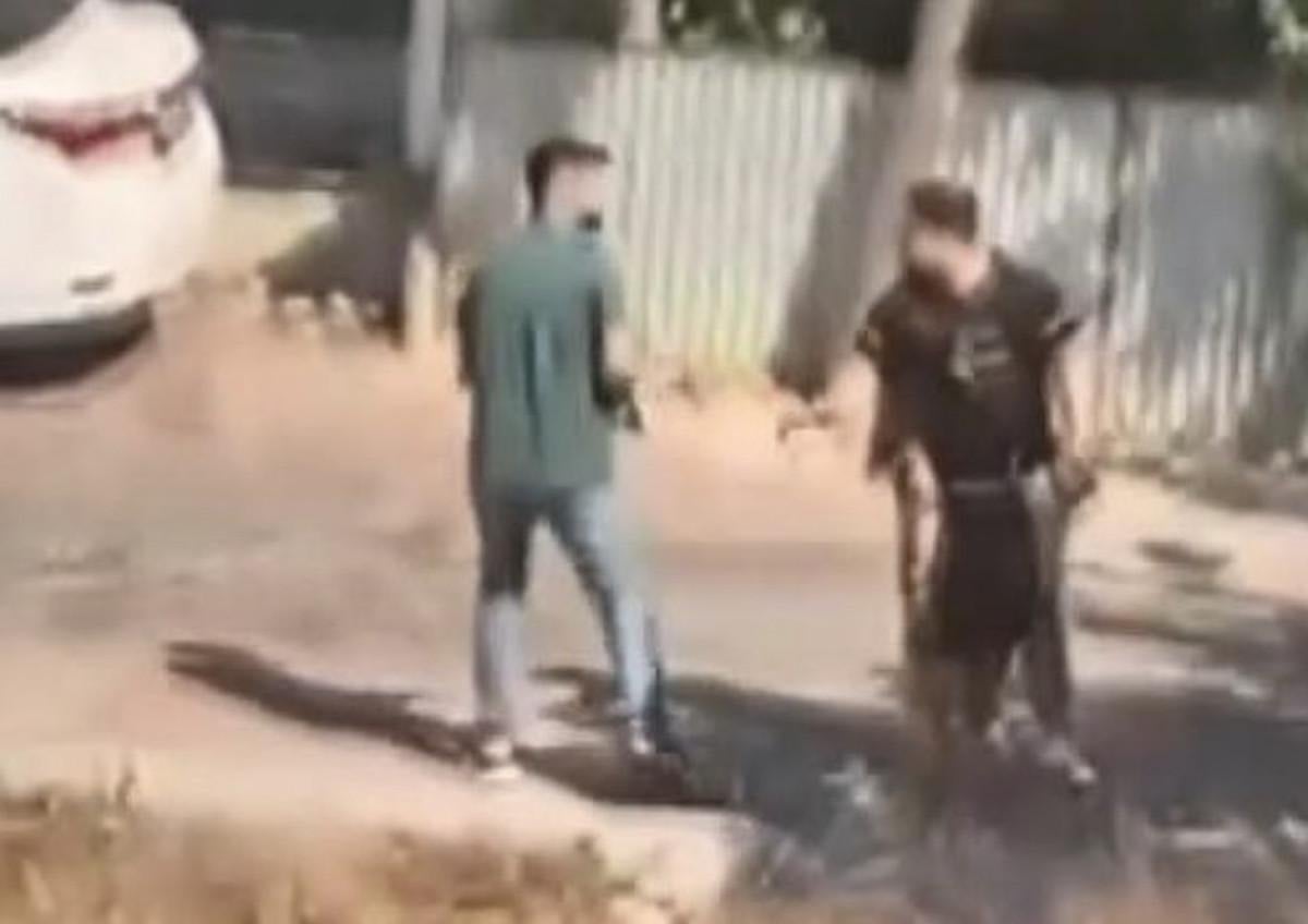 İstanbul Ümraniye'de elinde silah bulunan bir şüpheli, kadını sokak ortasında darbetti.
