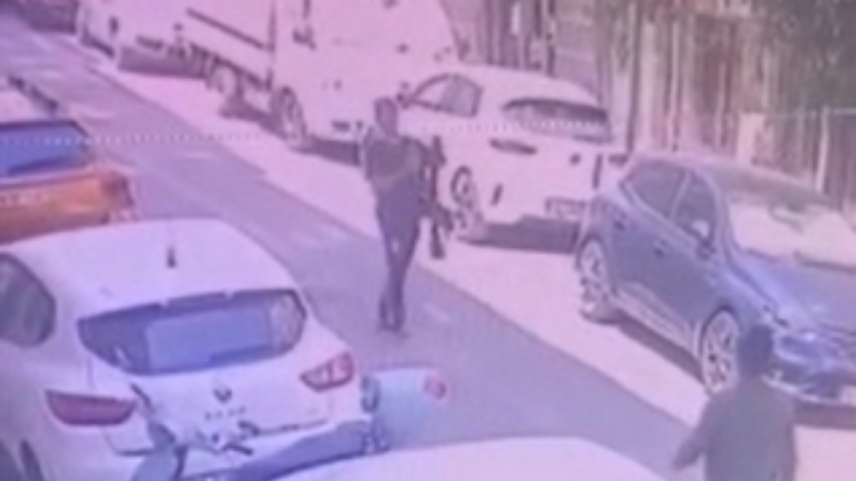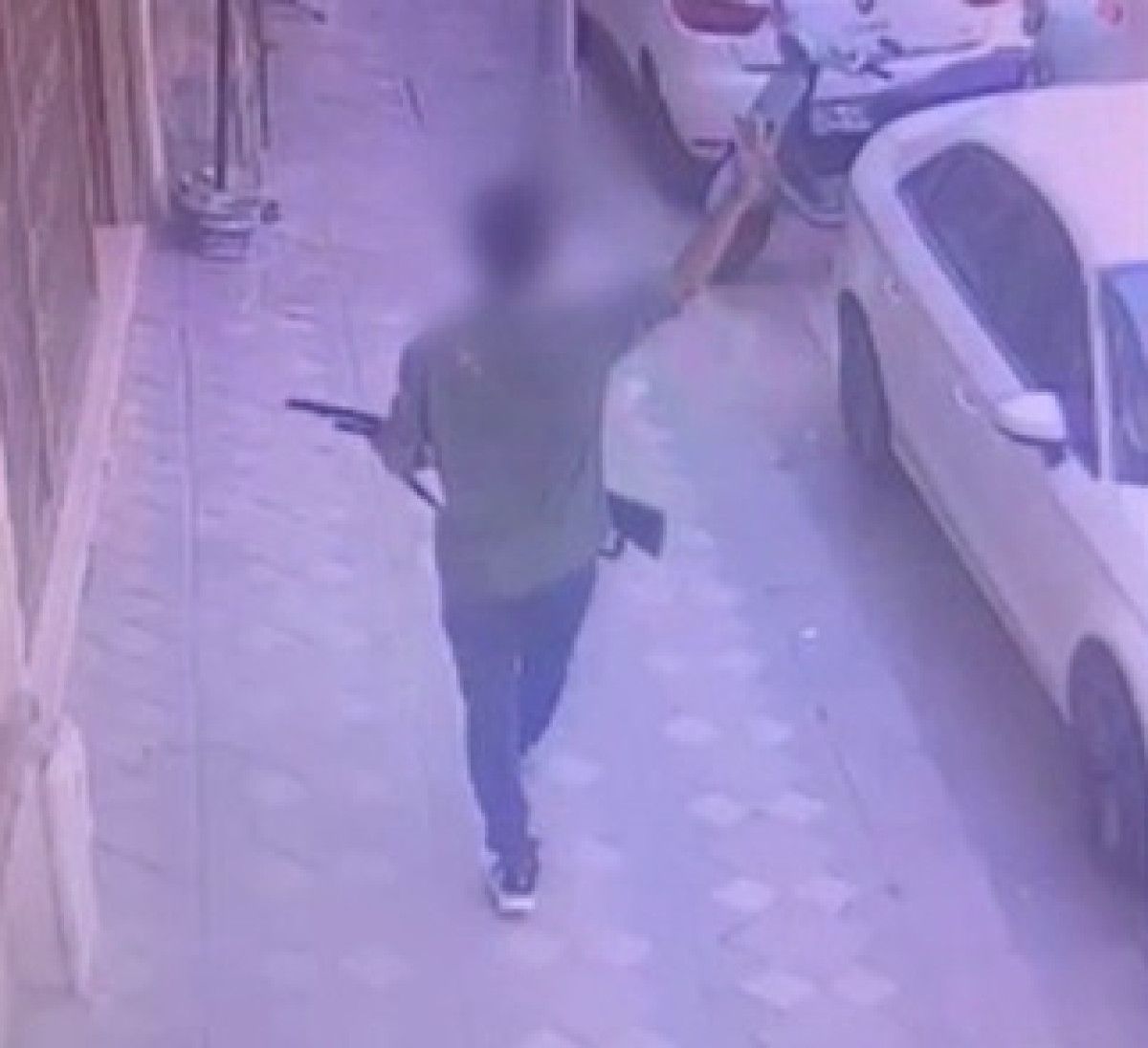 M.B'nin elinde tüfekle gezdiği anlar, güvenlik kamerasınca kaydedildi.