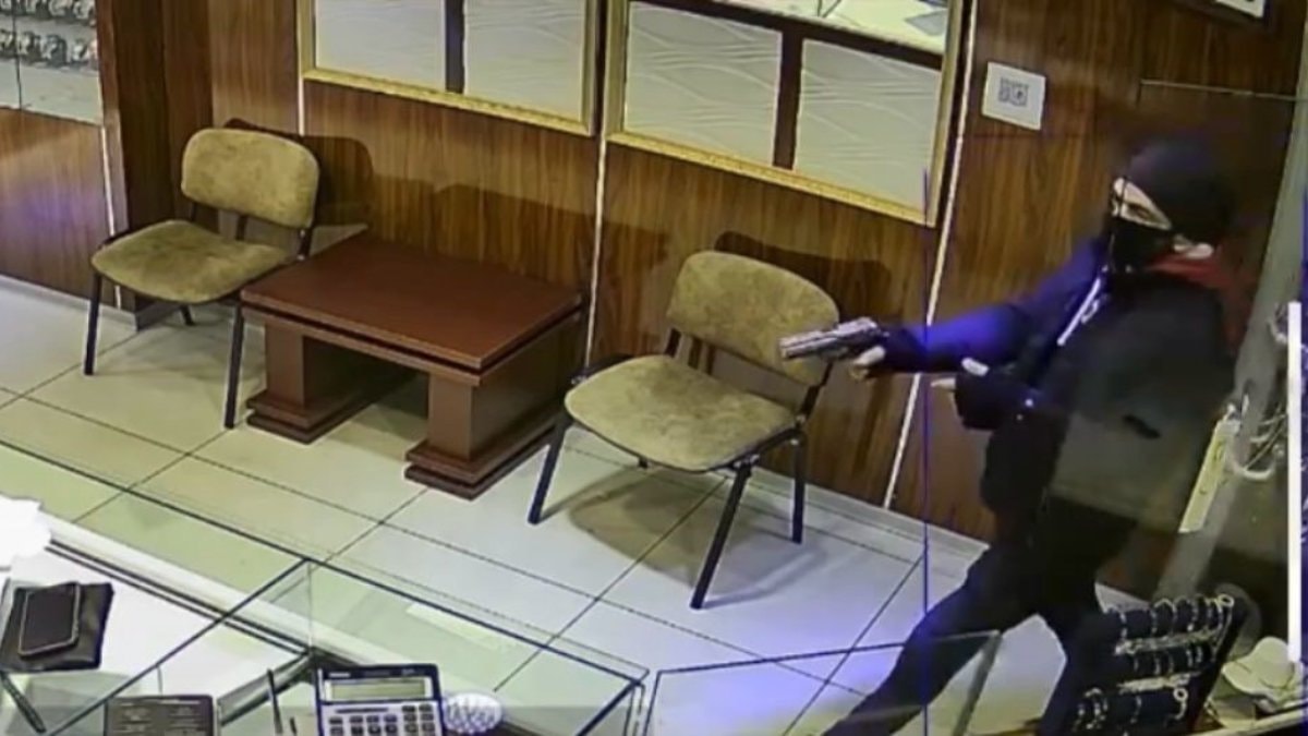 Başarısız soygun girişimi ise kuyumcunun güvenlik kamerasına saniye saniye yansıdı.