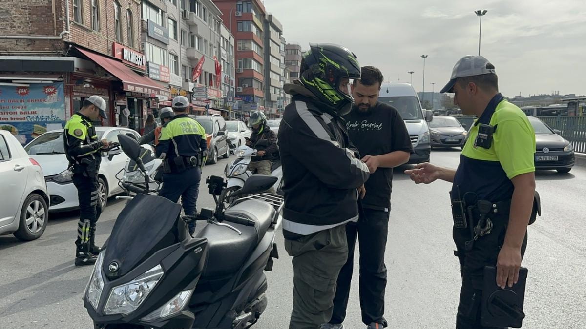 Kadıköy Rıhtım Caddesi'ndeki denetimlerde, motosiklet sürücülerinin yaya yollarını kullanıp kullanmadığı, kask kullanımı, yaya ve trafik güvenliği açısından ihlaller kontrol edildi.