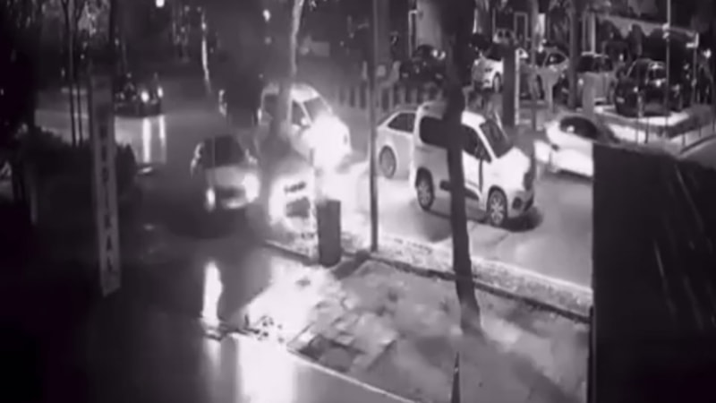 Bu sırada aynı yönde ilerleyen başka bir otomobile çarptı. Çarptığı otomobil ise kazanın etkisiyle kaldırıma çıktı.