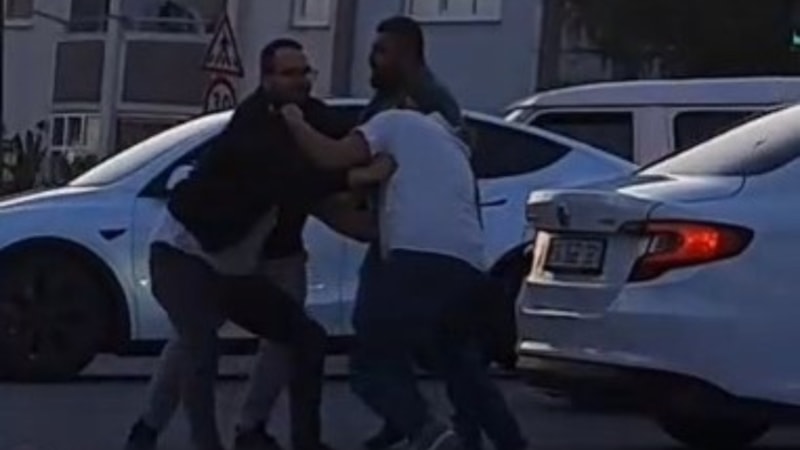 Arnavutköy'de iki sürücü arasındaki yol verme kavgası, cep telefonu kamerasına yansıdı. Kaydedilen görüntülerde, sürücülerin birbirlerine tekme ve tokatlarla saldırdığı görüldü.