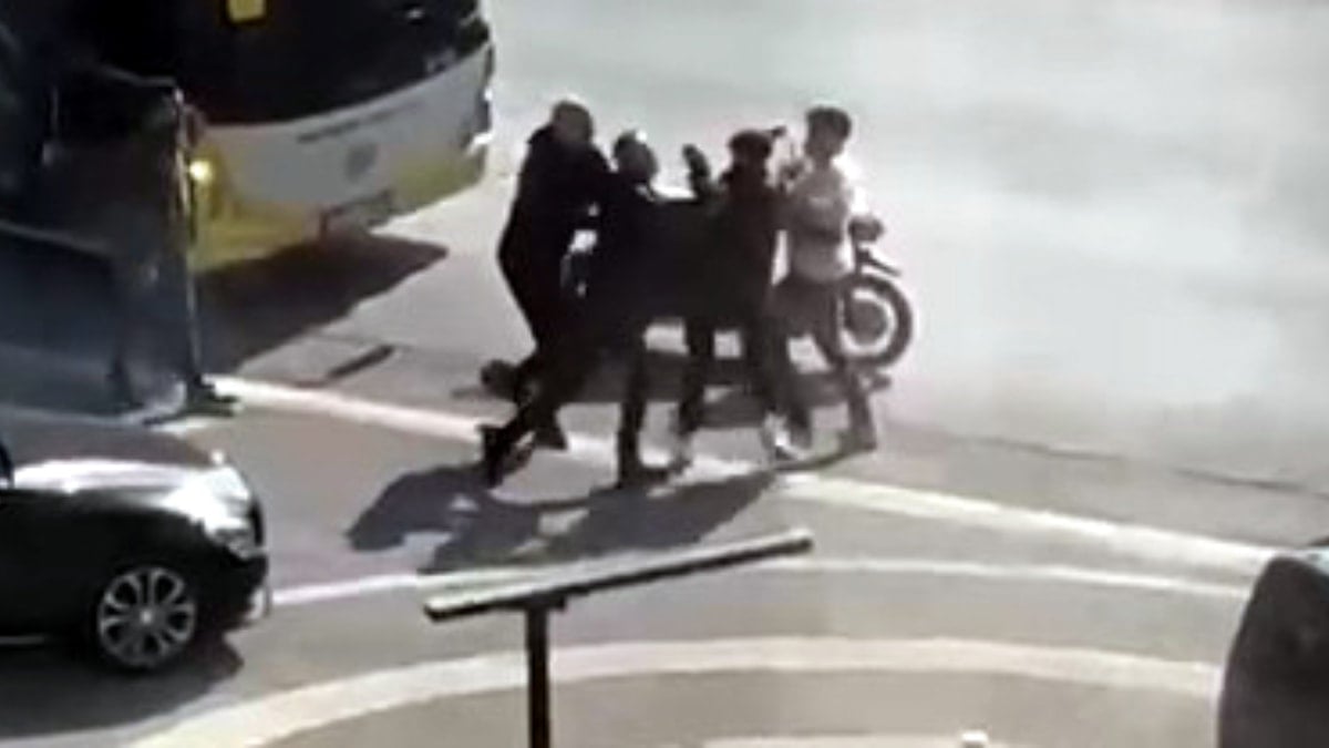 Çevredekilerin araya girmesiyle kavga sonlandırılırken o anları, bir kişi cep telefonu kamerasıyla kaydetti.