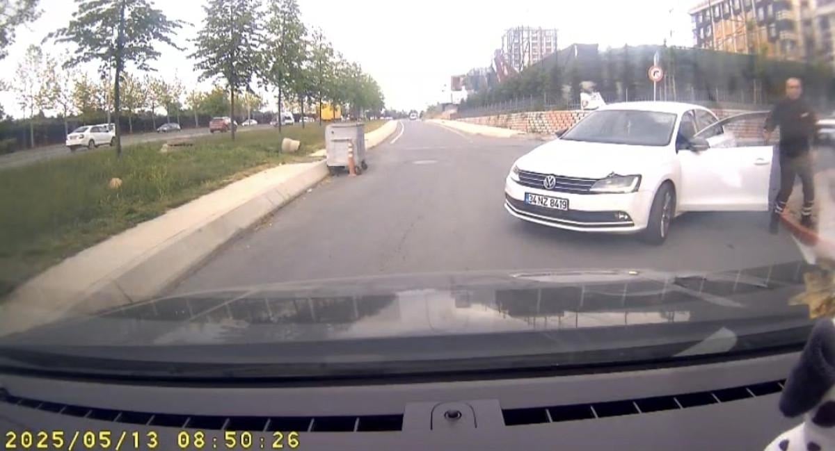 Aracından inen sürücü, diğerine "Canımı sıkma sabah sabah benim" derken, imkanı olduğu halde yoluna devam etmeyen sürücü ise otomobilin çekilmesini istedi.
