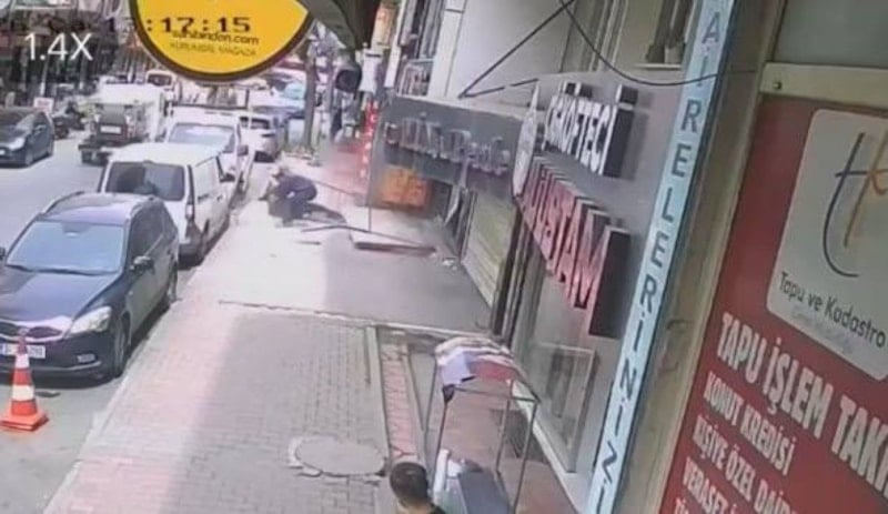 Gaziosmanpaşa'da dükkanın reklam tabelasını takmak için tabelanın üzerine çıkan kişi, tabelanın yerinden çıkmasıyla birlikte kaldırımda bekleyen kişinin üzerine düştü. Kaza anı güvenlik kameraları tarafından anbean kaydedildi.