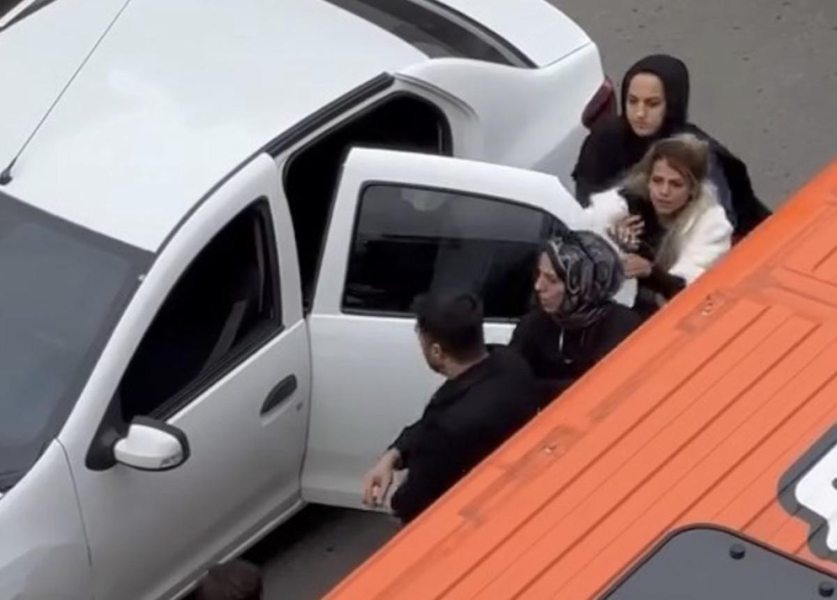 - Saldırgan, bir kadını araçtan indirip darbetti, diğer kadınlar araya girdi.