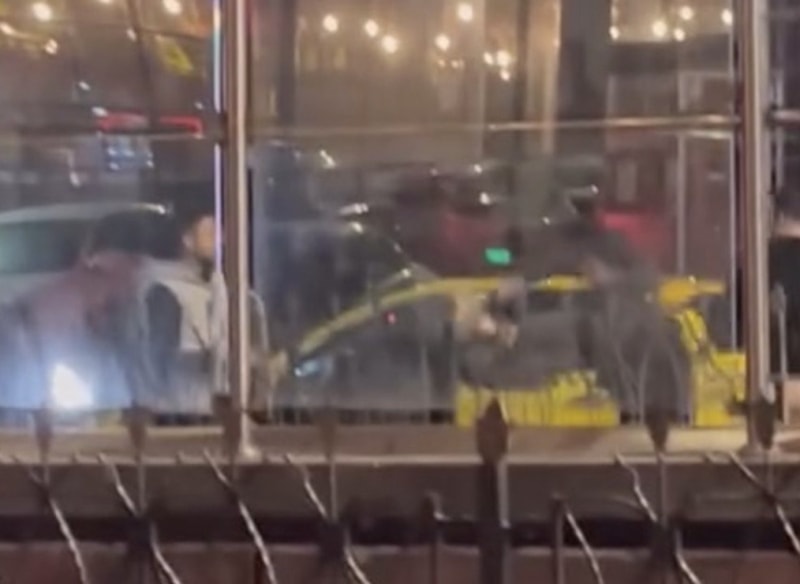 Saldırganlar olay yerinden uzaklaşırken, içlerinden biri taksi şoförüne saldırmayı sürdürdü.