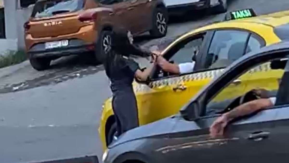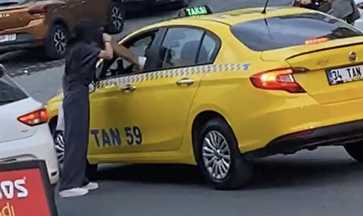 Duruma sinirlenen genç kız, taksinin önünü kesip fotoğrafını çektikten sonra ikili tartışmaya başladı.