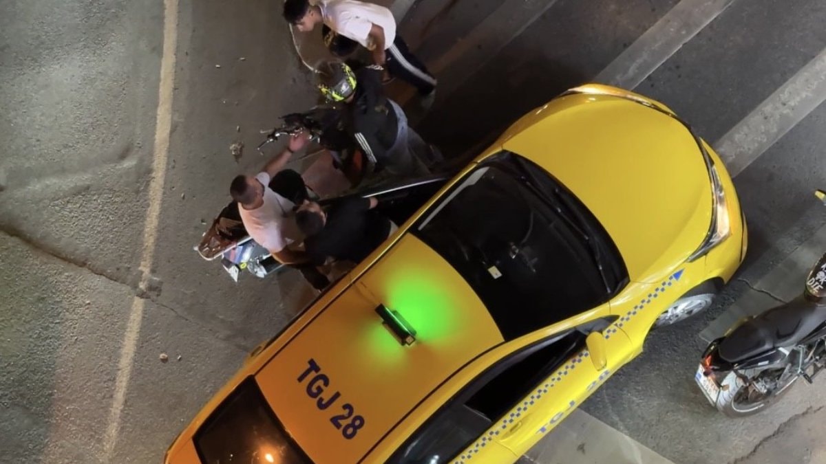 İstanbul'da Şişli Halide Edip Adıvar Mahallesi'nde, 34 TGJ 28 plakalı taksi ile 34 MYH 986 plakalı motosikletin sürücüsü yaya yolunda durup tartıştı.