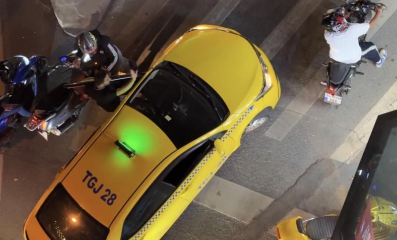 Daha sonra taksi sürücüsünün araçtan inerek motosikletliyle konuştuğu anlar kameraya yansıdı.