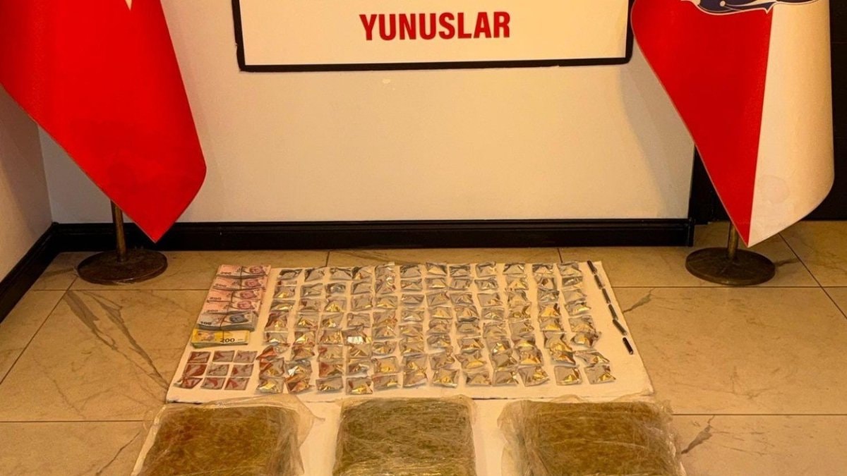 Araç sürücüsü L.C.’nin üzerinde yapılan aramada 71,5 gram marihuana, 7 gram kokain ve 2 cep telefonu ele geçirildi.