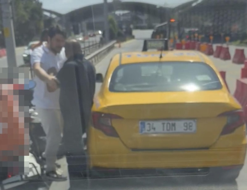 - İstanbul Sabiha Gökçen Havalimanı'nda moto kurye ile taksi şoförü arasında yol verme nedeniyle tartışma başladı.