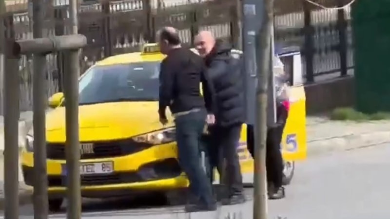 Taksi şoförü ve müşterisi arasında henüz bilinmeyen bir nedenle çıkan kavgada taksici, kadın müşterisini 'Seni öldürürüm' diyerek tehdit ederken, tarafları ayırmaya çevredeki vatandaşlar koştu.