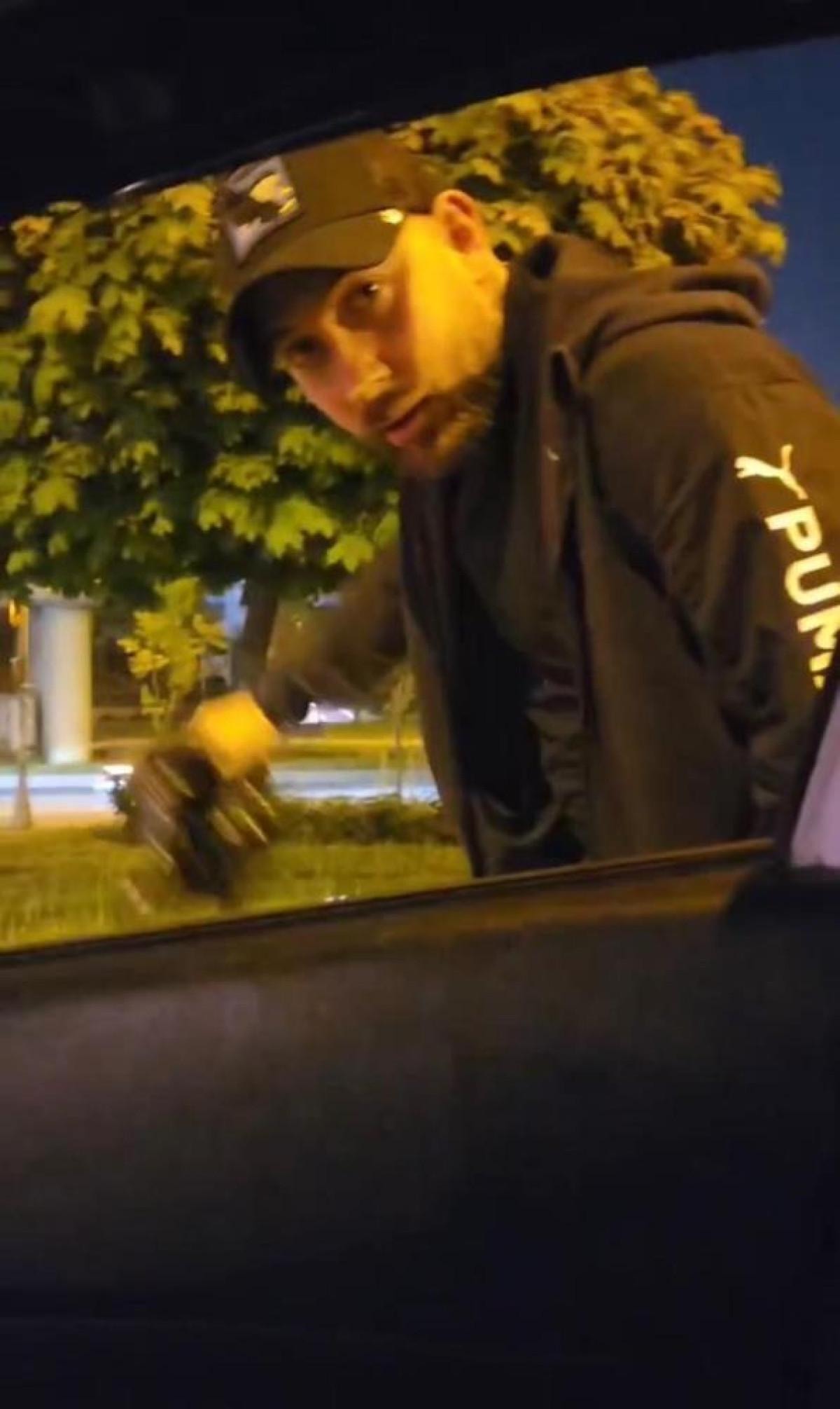 O anlar taksi sürücüsünün cep telefonu kamerası tarafından kaydedildi. Kaydedildiğini gören şahıs ise “Hem beni sosyal medyaya atacaksın hem de para isteyeceksin” diyerek uzaklaştı.