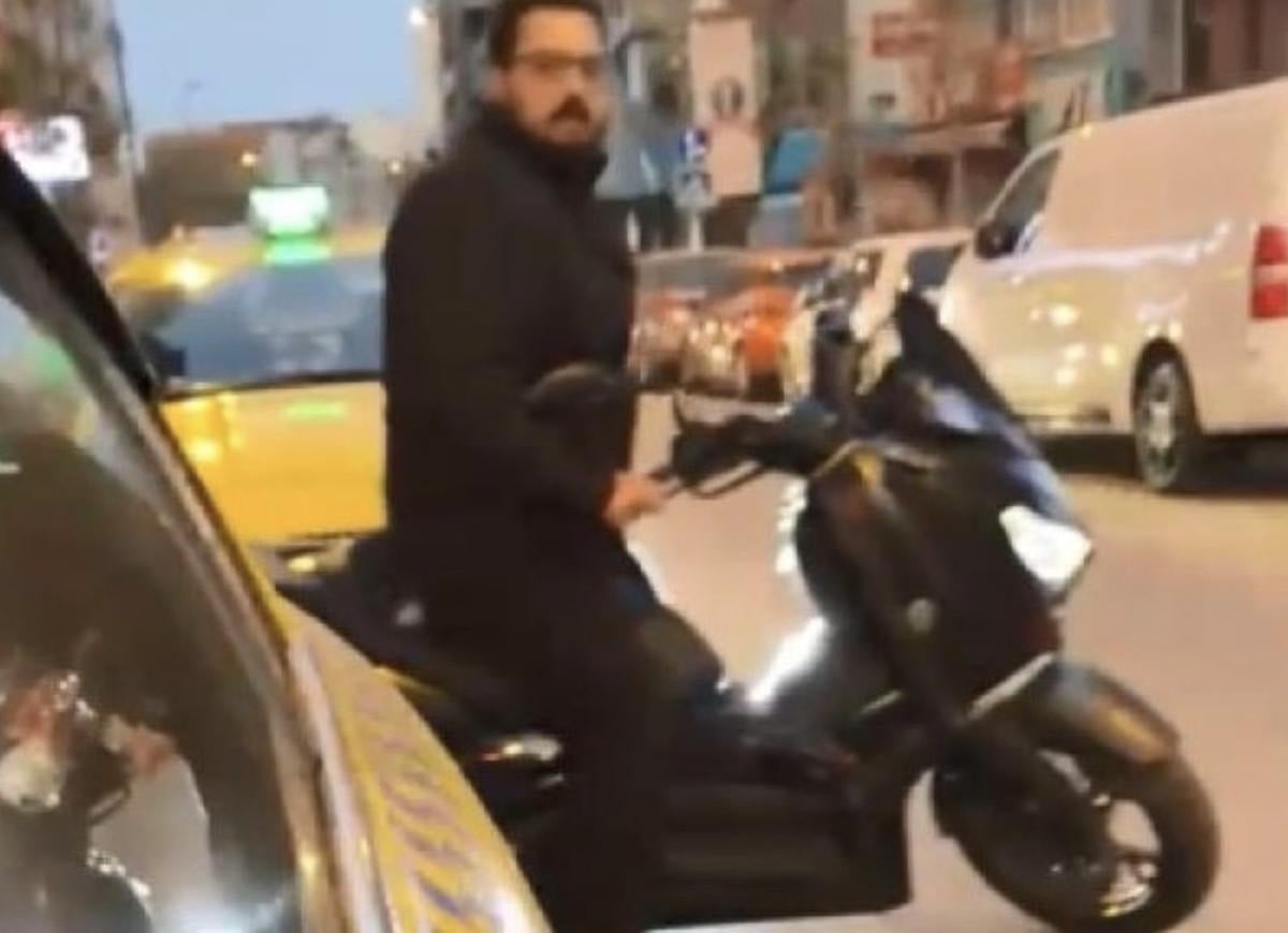 Olayda taksici Erkan Karadoğan, motosikletliye "Hem benim şeridime giriyorsun hem de artistlik mi yapıyorsun?" dedi.