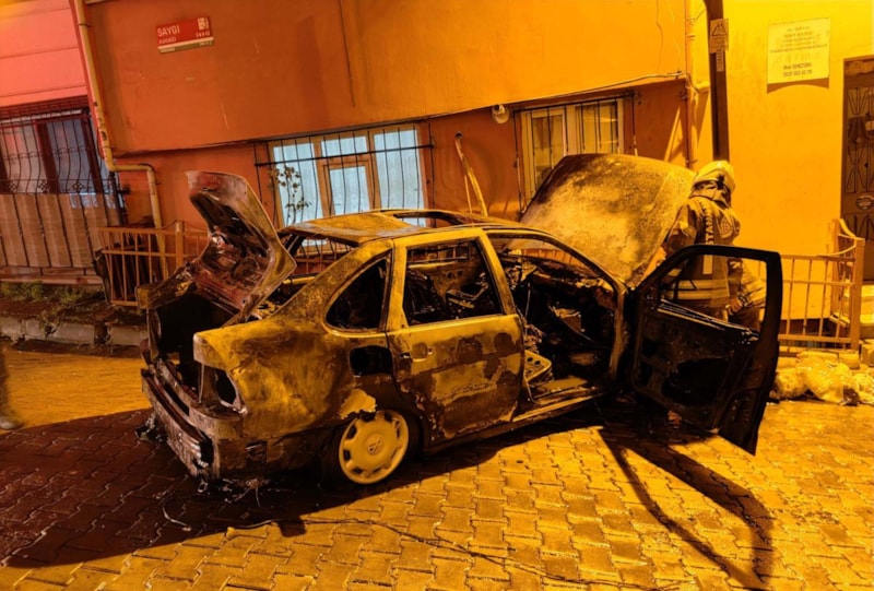 Ekipler araçta çıkan yangının nedenini bulabilmek için inceleme başlattı.