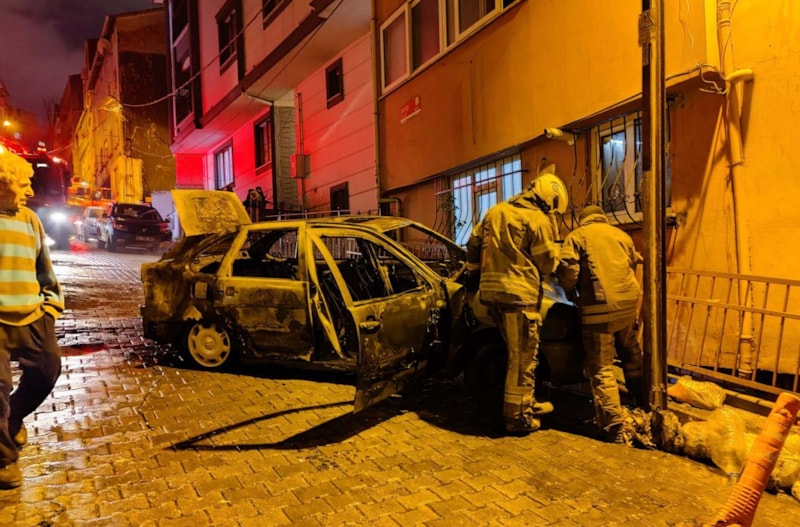 Kağıthane'de tamirciden yeni çıkan otomobil, park edildiği sırada bilinmeyen nedenle yanmaya başladı.