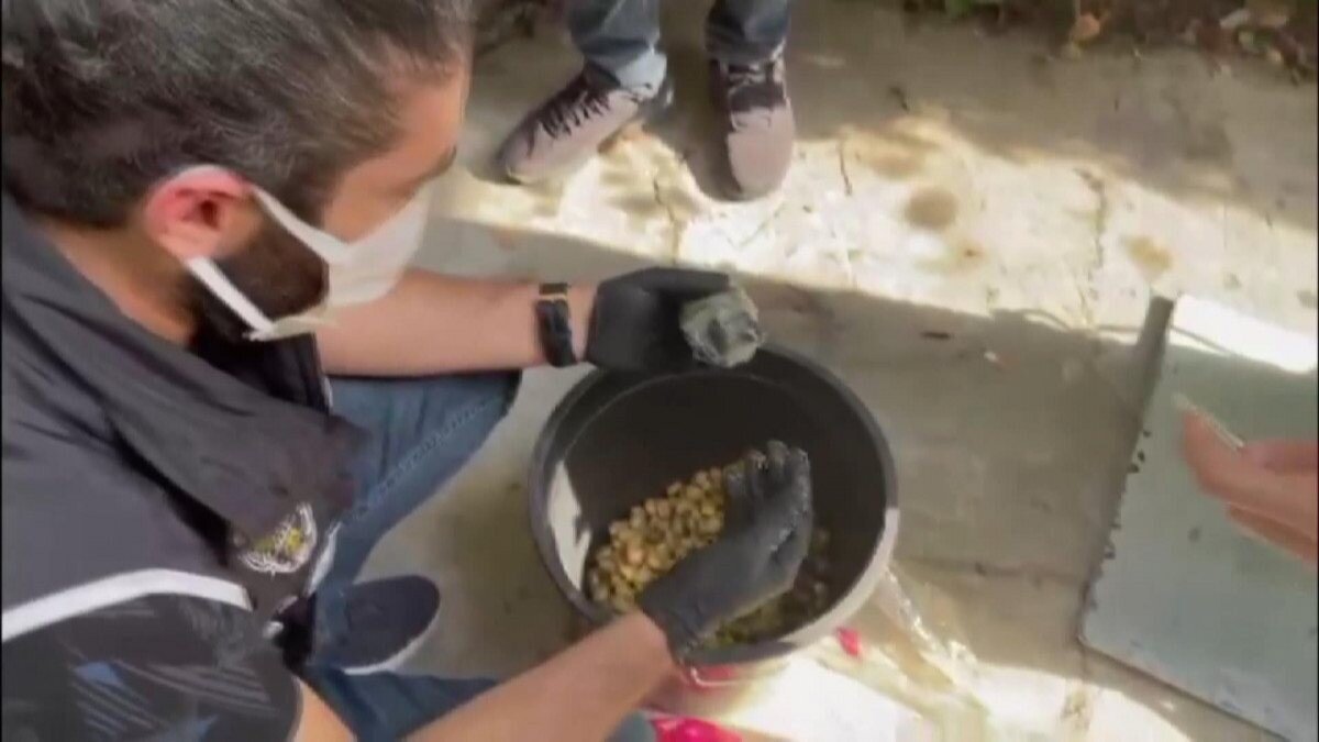 Yapılan operasyonlarda, zeytin bidonu içerisinde Türk İslam Medeniyetleri Dönemi-Bizans Dönemi'ne ait olabileceği düşünülen 30 adet Bizans öncesi ve İslam dönemi sikke, 48 adet Roma dönemi oyun taşı, 3 adet gözyaşı şişesi, 5 adet çeşitli dönemlere ait obje olmak üzere toplamda 86 obje ve sikke ele geçirildi.