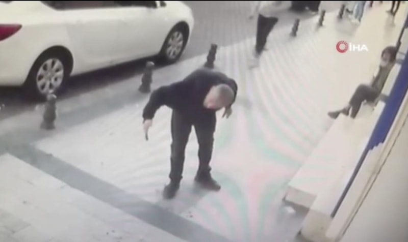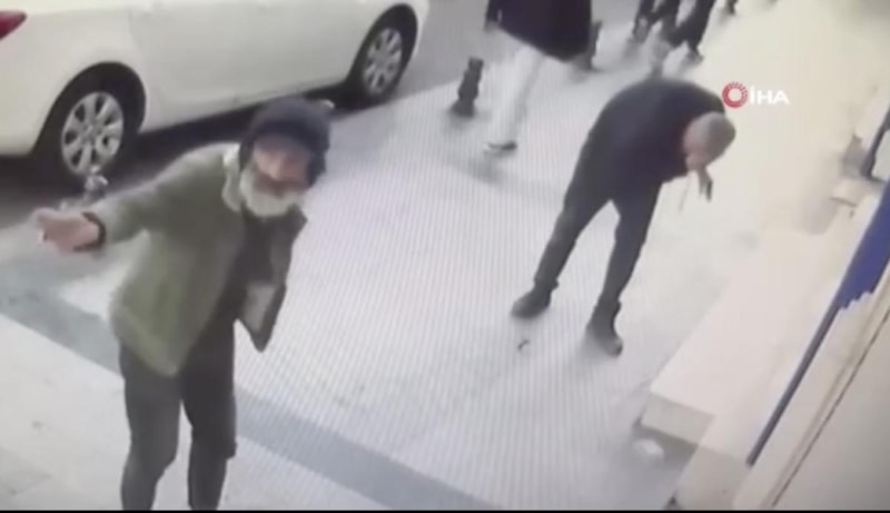 Olayda, dışarı çıktığında, Engin Yalçın (43) ile arkadaşının alkollü vaziyette kaldırımda oturduğunu ve hemen karşılarında park halinde bulunan işletme sahibinin aracına bir cisim fırlatıldığını gördü.