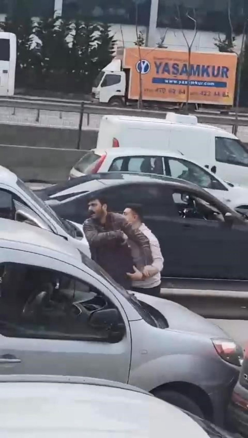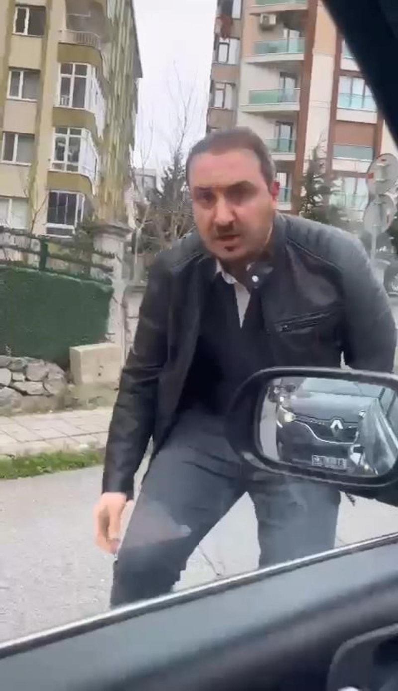 Bu sırada orta şeritten giden otomobil sürücüsü, trafikten dolayı yol vermedi. Yol isteyen sürücü, 500-600 metre sonra kendisine yol vermediğini iddia ettiği aracın önünü kesti ve aşağı indi.