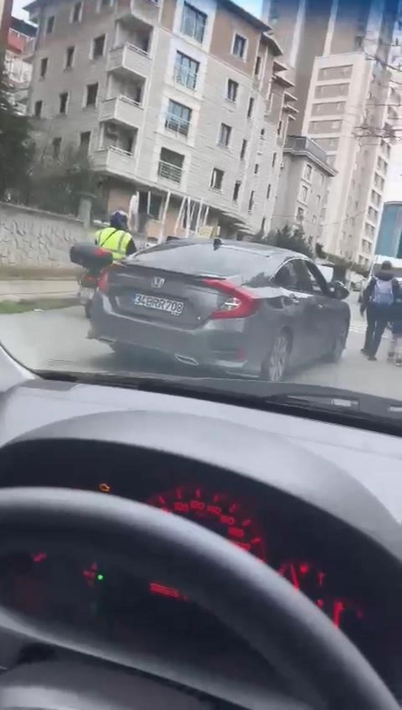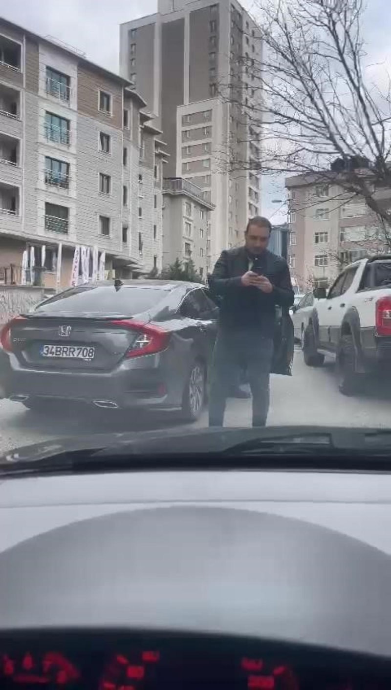 Otomobildeki sürücü ise araçtan inmeyeceğini söyleyerek cep telefonuyla o anları görüntülemeye başladı.