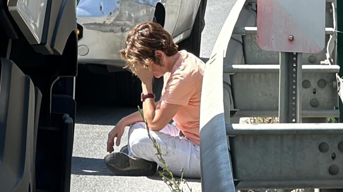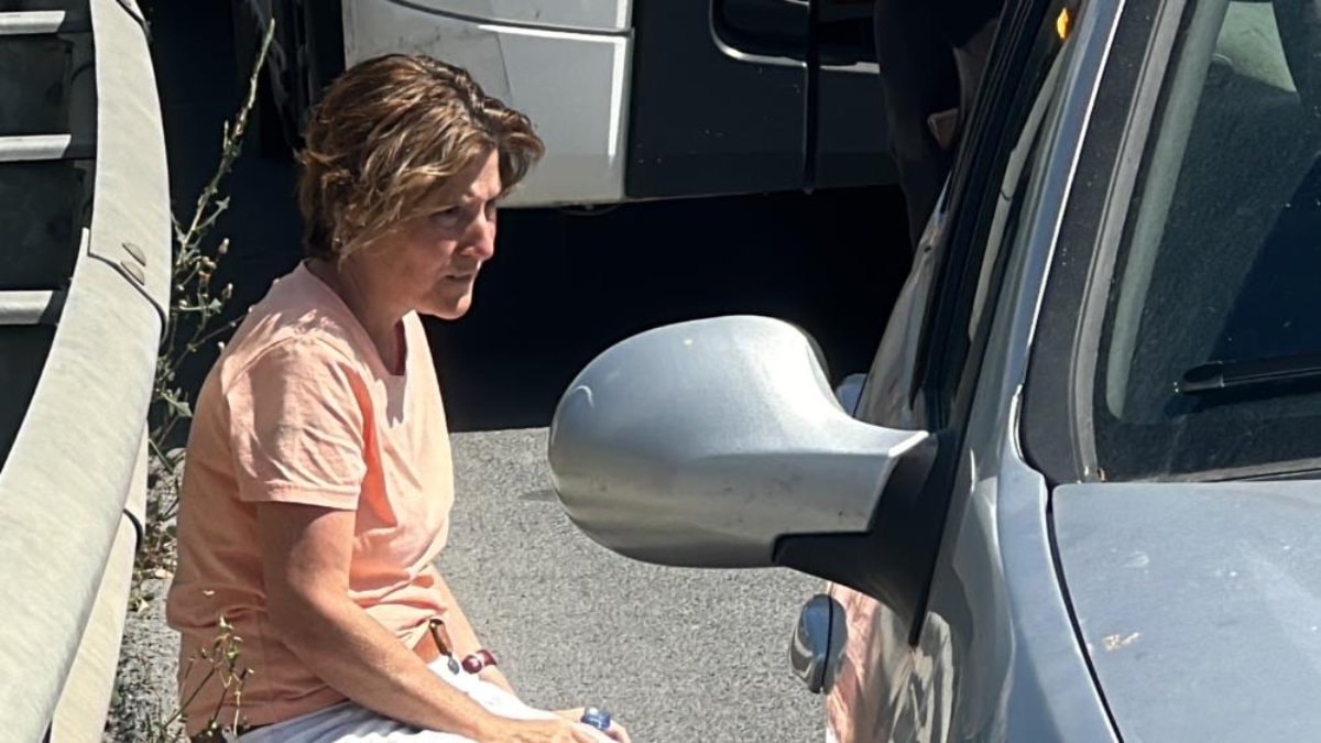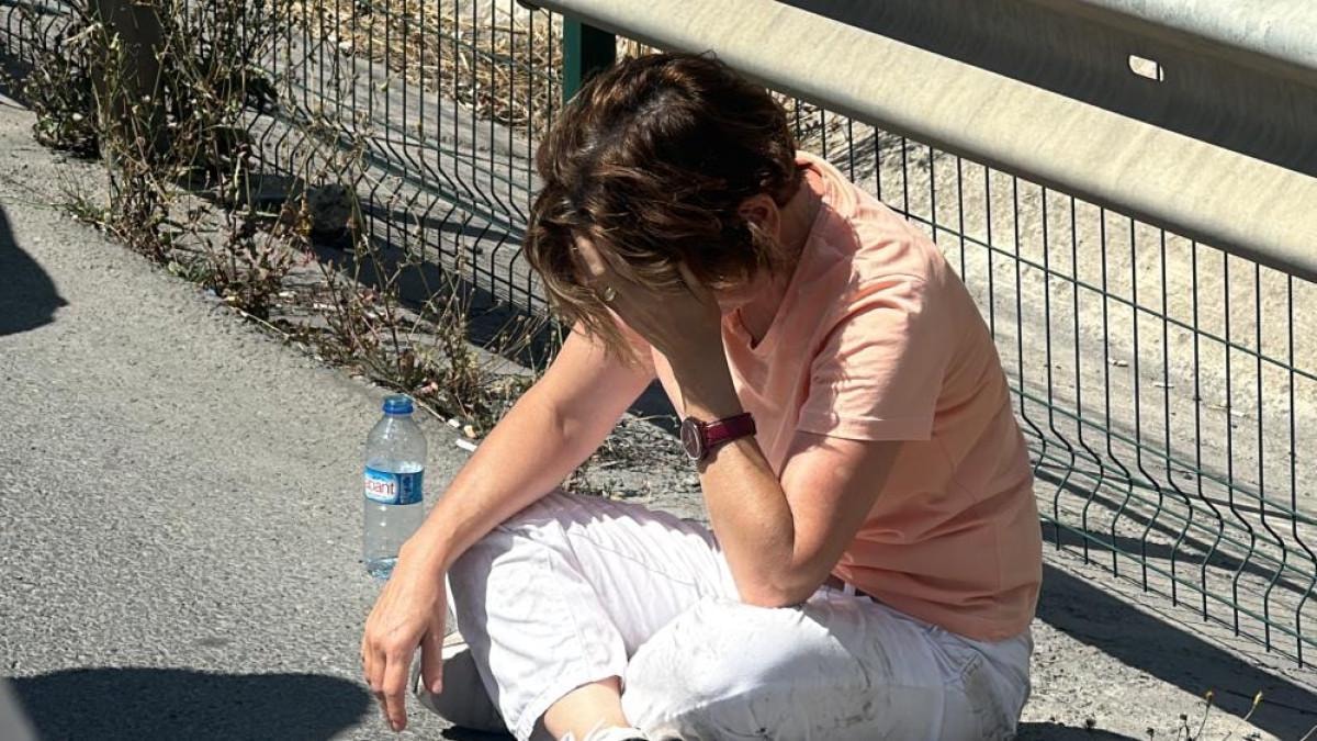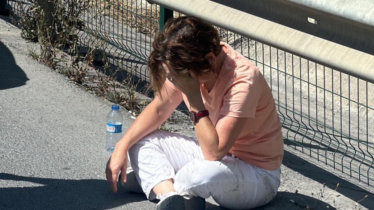 Ekipler beklendiği esnada kadın yol kenarında oturtulurken, yakınları da onu sakinleştirmeye çalıştı.