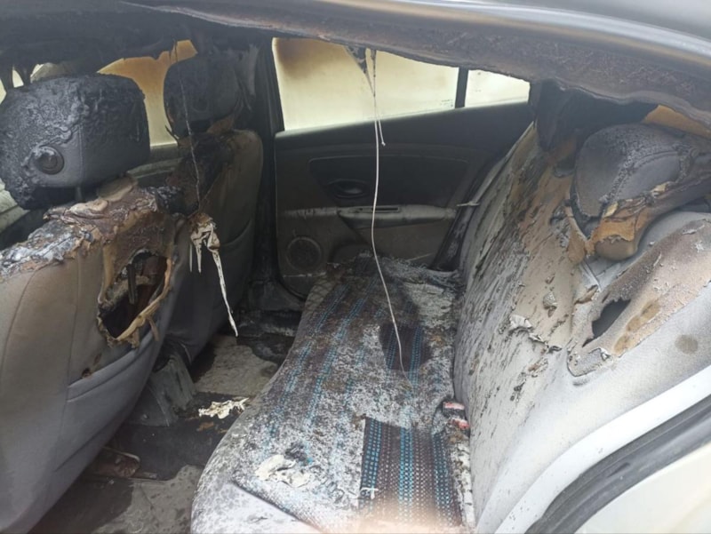 Alevlerin yükselmesiyle birlikte aracın lastikleri patladı. Patlama sesine uyanan Çiftçi, aracına yangın söndürme tüpüyle ilk müdahaleyi yaparak 112 acil ihbar hattına bildirdi. İhbar üzerine olay yerine itfaiye ve polis ekipleri sevk edildi. İtfaiye ekipleri yanan otomobili kısa sürede söndürdü.