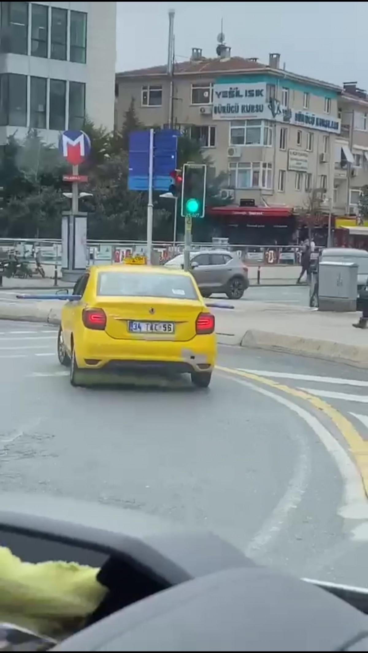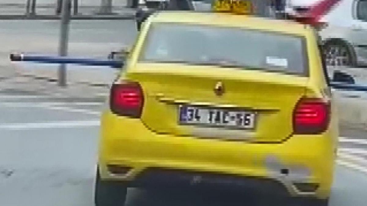 34 TAC 56 plakalı taksi şoförü bir ucunu arka sol camdan diğer ucunu ise ön sağ camdan çıkardığı metrelerce uzunluktaki boruyu aracıyla taşıdı.