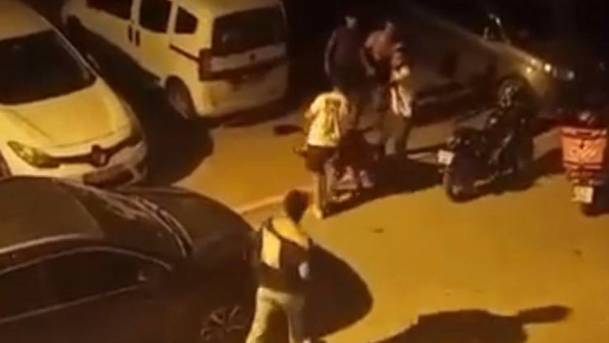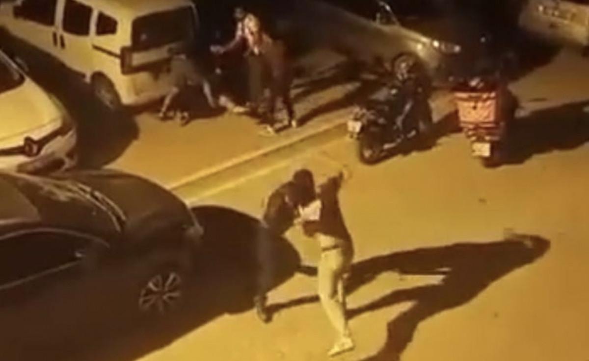 Taraflar, güçlükle sakinleştirilirken kavga anını aynı sokakta yaşayan bir vatandaş cep telefonu kamerasıyla görüntüledi.