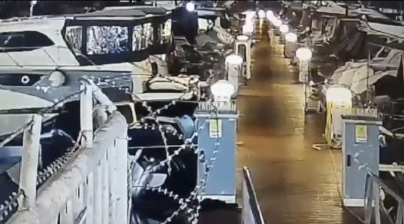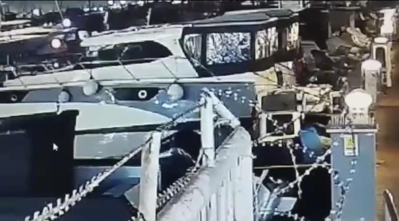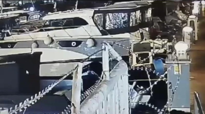 Güvenlik kamerasına yansıyan görüntülerde teknenin açılması, bir anda durması ve geri dönmesi yer aldı.