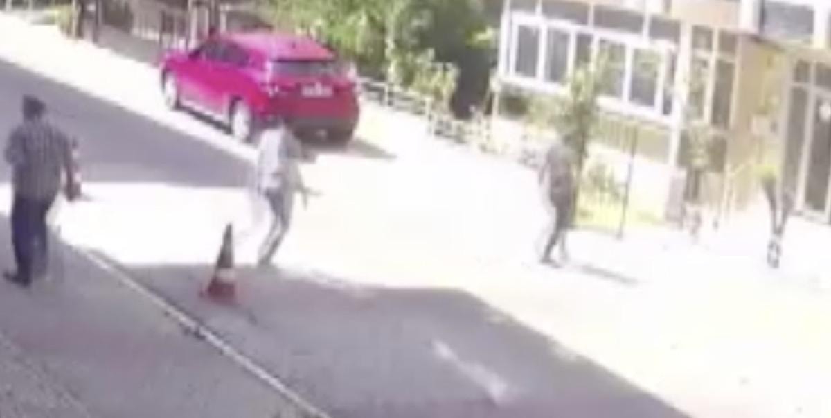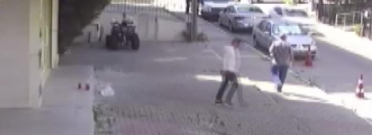 Şüphelinin gözaltına alındığı anlar bir güvenlik kamerasına da yansıdı.