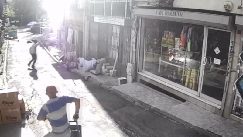 Onur Ö.’nün düşme anı, çevredeki bir iş yerinin güvenlik kamerası tarafından kaydedildi.