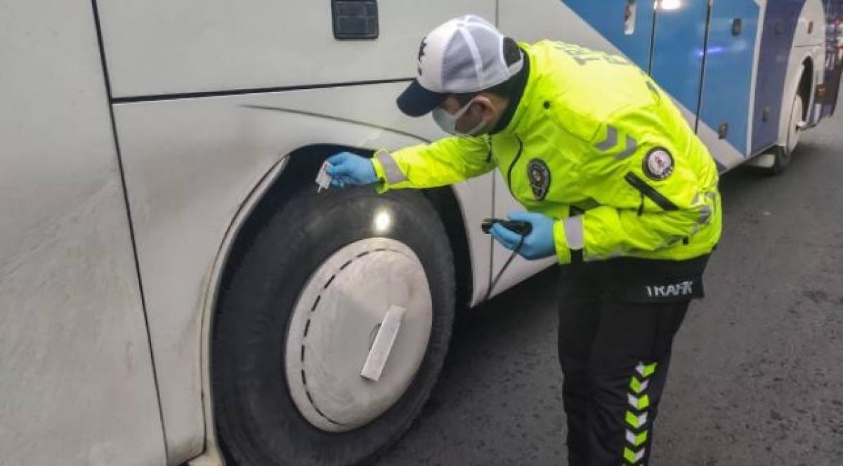 Denetimden geçen otobüs şoförü Fatih Doğan, "Lastiğimiz 6 milim çıktı. Yeterli bir durumda. Taktıralı 1 ay olmuştu." dedi.