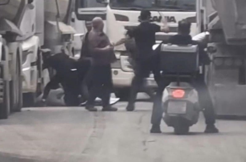 Yaşanan kavga anı, çevredeki bir kişi tarafından cep telefonu kamerasıyla kaydedildi.