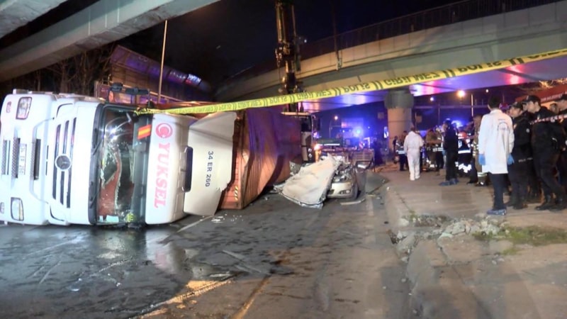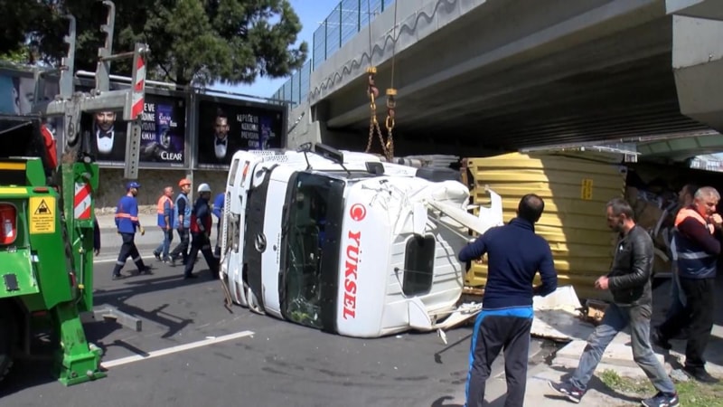 Bakırköy ilçesinde saat 18.45 sıralarında meydana gelen kazada Mehmet F.'nin kullandığı kağıt yüklü tır, Yeşilyurt Mahallesi Rauf Orbay Caddesi'nde bulunan Marmaray geçidine çarparak bir otomobilin üzerine devrildi.