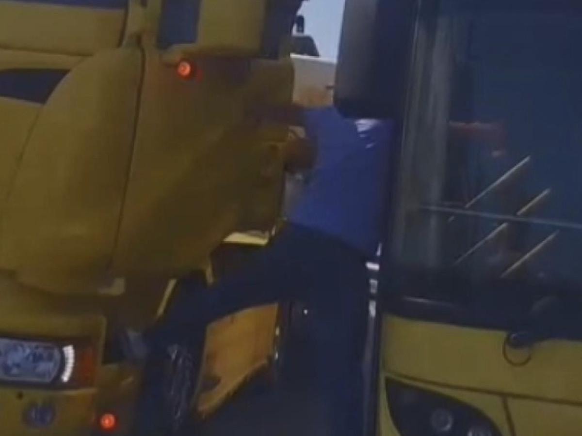 Tartışma kısa sürede büyürken, tırda bulunan diğer kişi araçtan inerek otobüse bindi.